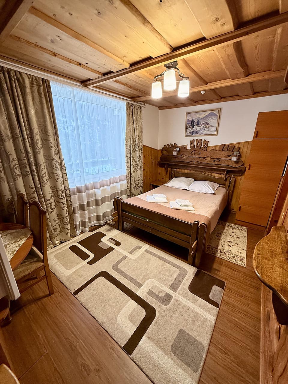 К Вашим услугам комфортабельный номер "двухместный", исполнен в национальном закарпатском стиле.