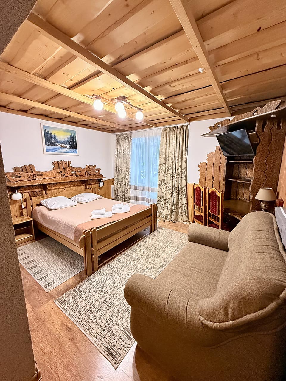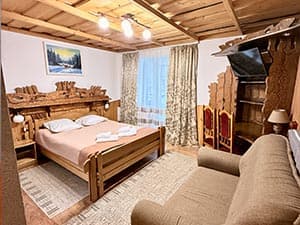 До Ваших послуг комфортабельний номер "напівлюкс", виконаний у закарпатському національному стилі.