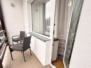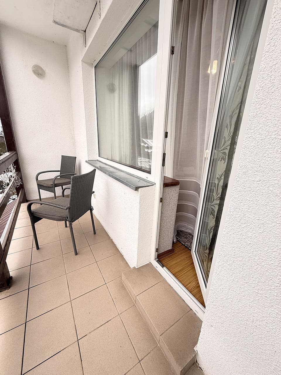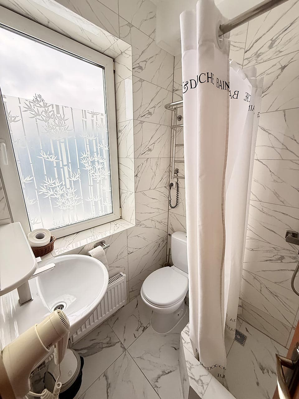 В номері: двомісне спальне ліжко, шафа, телевізор, холодильник, фен, зручності, балкон з видом на річку.