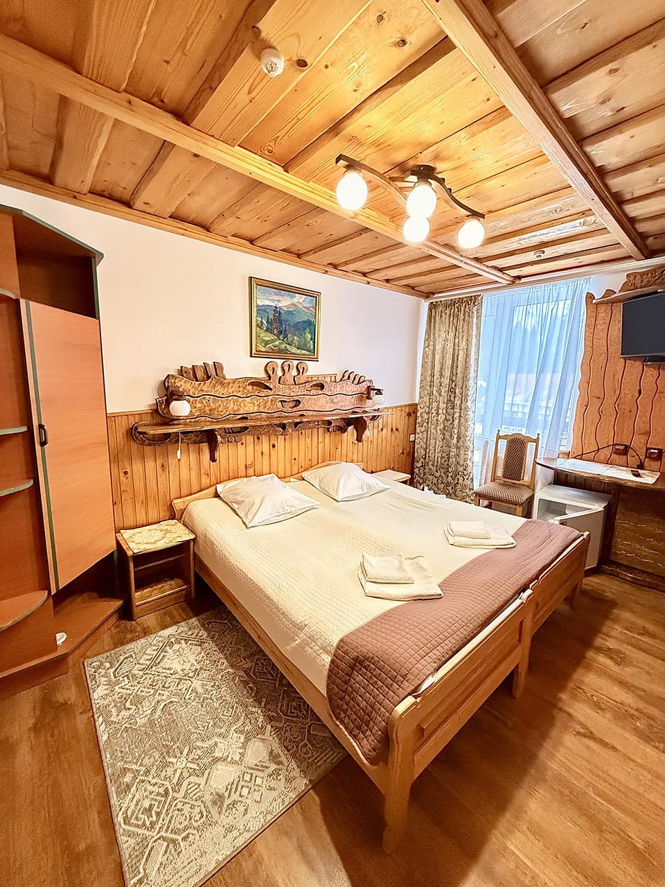 До Ваших послуг комфортабельний номер "двомісний", виконаний у закарпатському національному стилі.